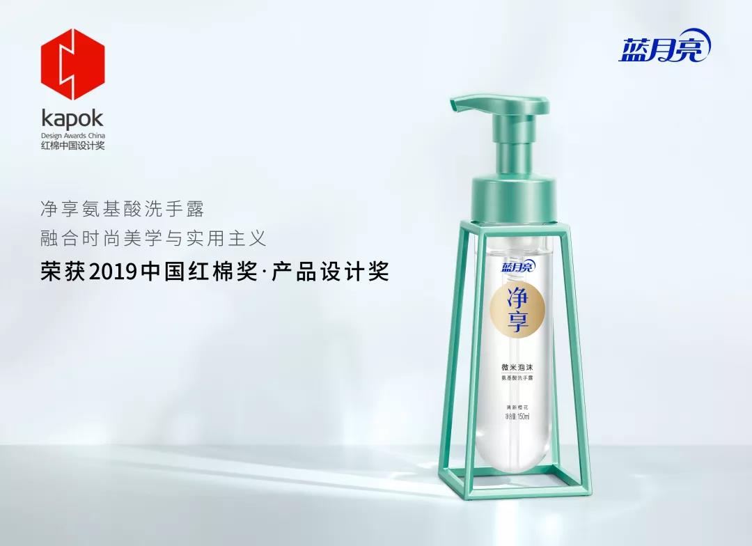 12月5日,广州设计周于广州保利世贸博览馆及南丰国际会展中心开幕,同期举办了2019红棉中国颁奖典礼。蓝月亮净享氨基酸洗手露凭借高端时尚的包装造型和创新的产品理念,成功在4000多件参选产品中脱颖而出,荣获“产品设计奖”。