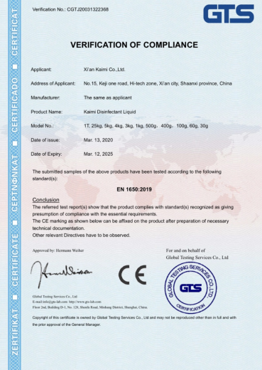 记者刚从西安开米公司获悉,开米洗手液和消毒液已拿到欧盟国家的CE认证,也就是向欧盟盟国的官员表明:开米的认证产品,可以合法地进入欧盟统一市场。同时,开米公司相关负责人也表示,此认证很难通过,拿到CE认证对于公司未来发展具有重要意义!