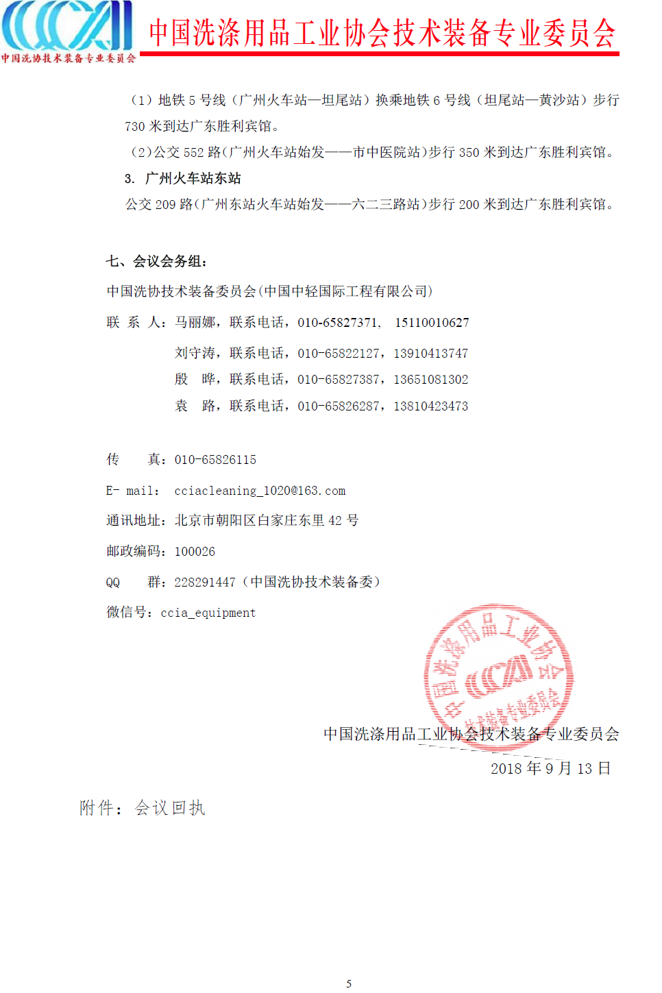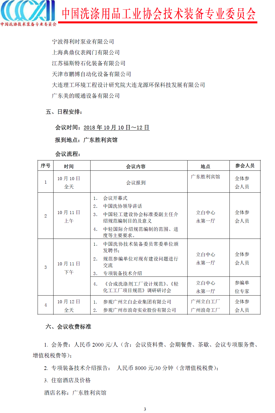 附件:2018年中国洗协技术装备专业委员会年会暨《合成洗涤剂工厂设计规范》、《轻化工工厂项目规范》编制工作研讨会会议通知(第三轮)