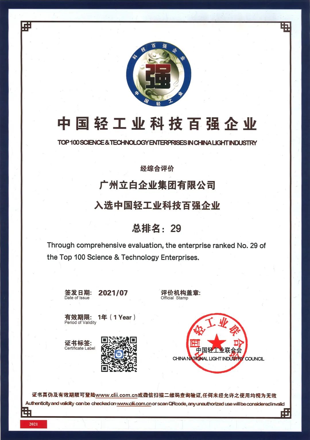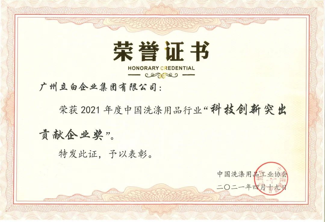 立白集团具备行业领先的科研创新能力,拥有2个国家“高新技术企业”“中国轻工业工程技术研究中心”“中国轻工业绿色洗涤用品重点实验室”“博士后科研工作站”和“院士企业工作站”等。2021年立白集团还入选了中国轻工业科技百强企业(总排名29名),在日化行业排名第一,同年被中国洗涤用品工业协会评选为“科技创新突出企业”。