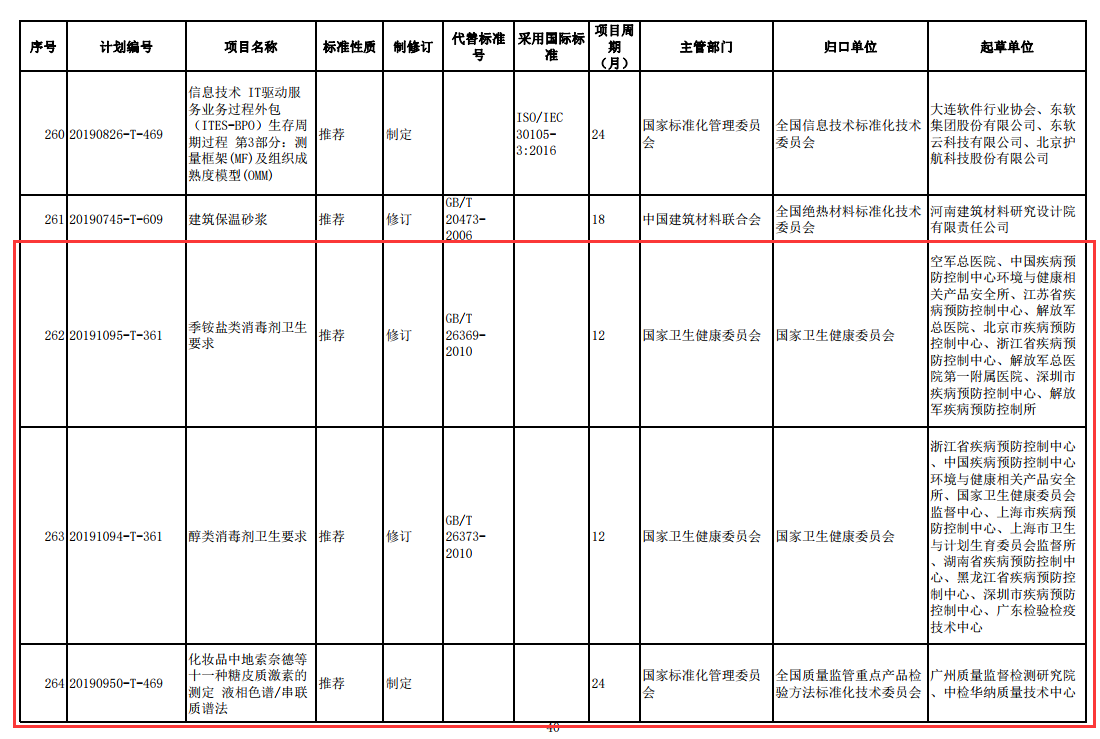 《季铵盐类消毒剂卫生要求》、《醇类消毒剂卫生要求》和《化妆品中地索奈德等十一种糖皮质激素的测定 液相色谱/串联质谱法》